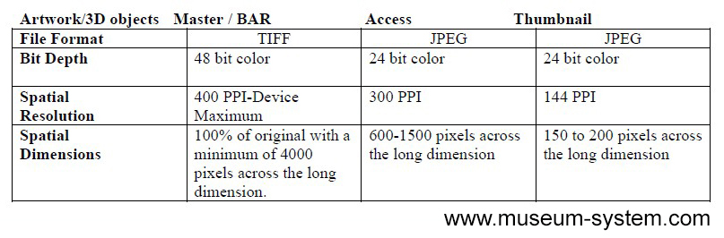 Ако проектът ви изисква сканиране на обекти (които не са 3D) и чийто размер позволява обработка с наличното оборудване, можете да използвате стандартите от поместената по-долу страница. А насоките за сканиране на фотографии на обекти и артефакти, можете да откриете в таблиците за сканиране на фотографии и филми.